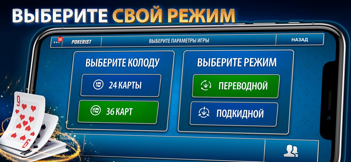 ПОДКИДНОЙ И ПЕРЕВОДНОЙ ДУРАК: В нашей игре вы можете выбрать режим себе по душе: подкидной дурак позволит вам быстро реагировать на действия соперников, а переводной дурак поможет развить стратегическое мышление.