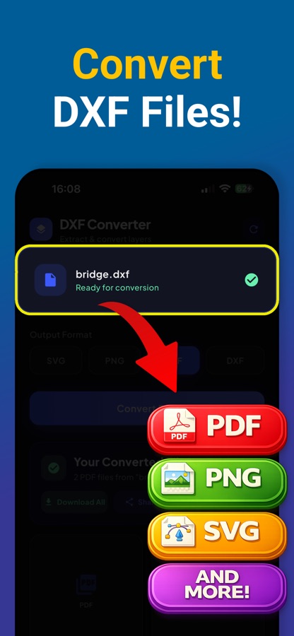 Приложение специализируется на конвертации DXF-файлов в формат PDF, что делает обмен проектами между различными платформами и устройствами максимально простым.