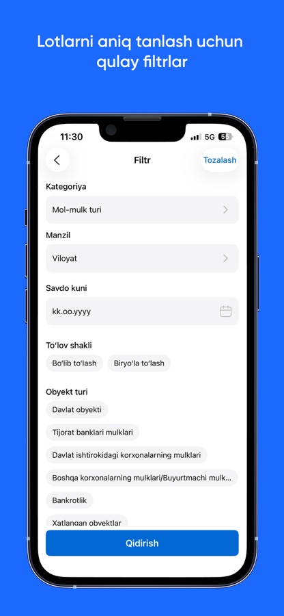— кенгайтирилган қидирув, саралаш ва категориялар бўйича мол-мулклар, объектларни тез топиш ва кўриш;