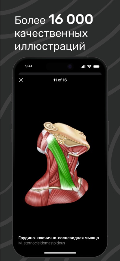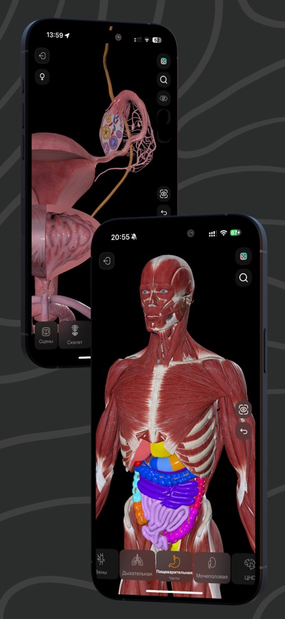 Анатомически точный 3D-Атлас с мужской и женской моделями. Более 11 000 структур. Изучай каждую систему организма — от скелета до сосудов — с максимальной детализацией. Удобный интерфейс и плавная навигация помогают сосредоточиться на главном — знании.