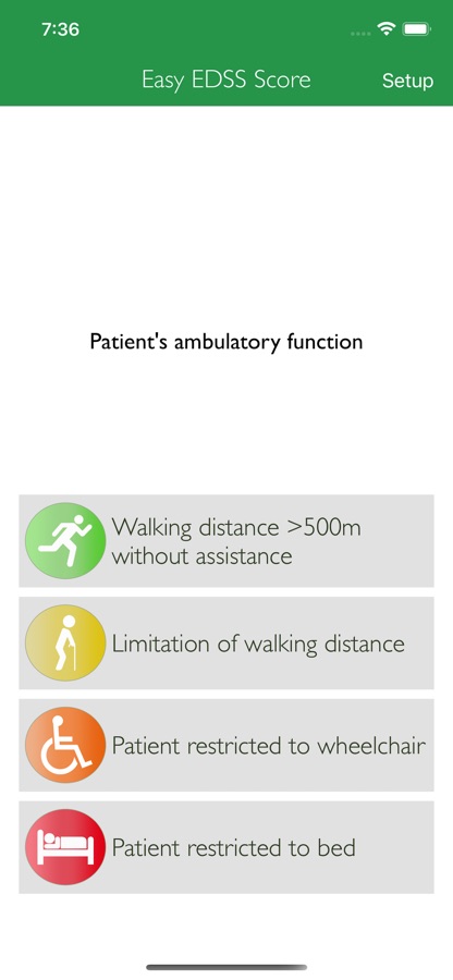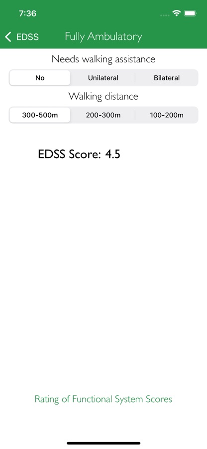 Easy EDSS Score is based on the EDSS score published by Kurtzke et al. (bibliographic reference is included in the app)