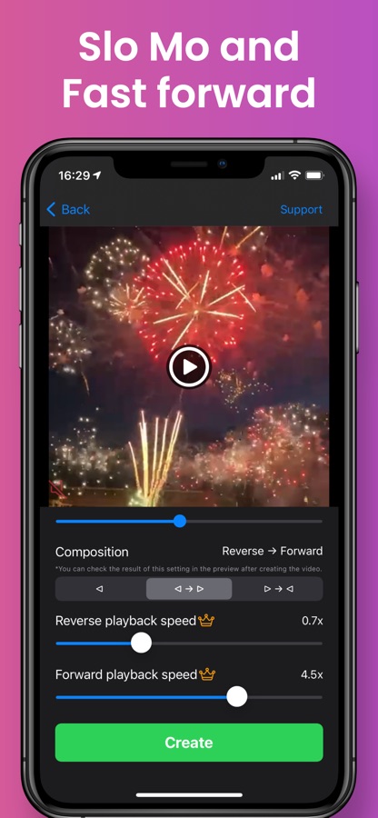 In the Pro Edition, you can set the speed of the reverse playback and the speed of the forward playback separately.