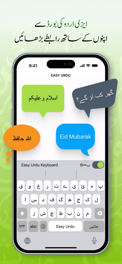 Now you can type in Urdu Nastaliq font using your iPhone and iPad. Freely type in Roman English keyboard and proper Urdu words will appear automatically. Urdu keyboard is also provided.
