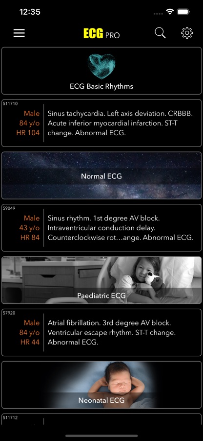 1) 3500+ abnormal real world 12 lead ECG cases in raw data (In-App-Purchase needed for advanced ones)