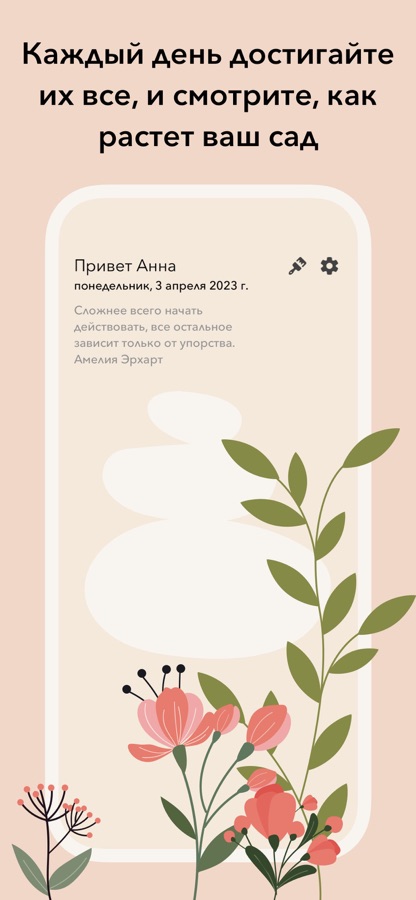 Каждый день, когда вы выполняете свои задачи, вы будете понемногу выращивать цветок. Придерживаясь своих привычек, вы будете выращивать сад и наполнять его цветами!