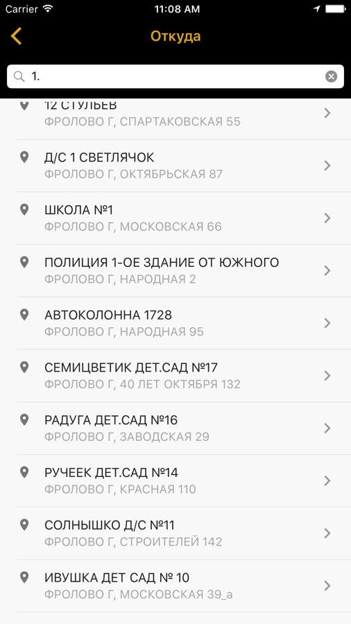 * Выбирать адрес на карте, вводить его вручную или выбирать из списка ранее использованных адресов;