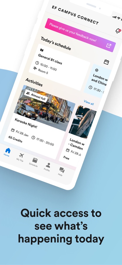 Here’s where you find all about your trip with EF. From getting your travel documents verified to schedule overview, we’ve it all under EF Campus Connect.