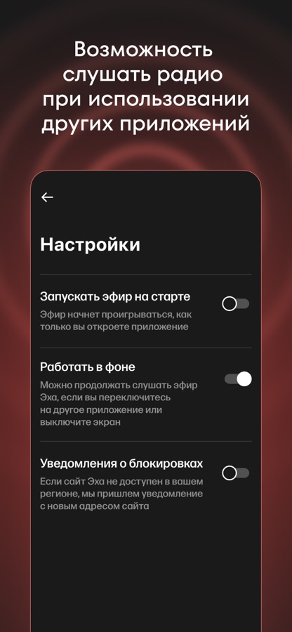 В приложении вам всегда доступна программа передач «Эха»: выпуски новостей, аналитические передачи, интервью с экспертами, подкасты на исторические, политические, научные и культурные темы. Все это вы можете слушать, даже если вы переключитесь на другое приложение или выключите экран. Скачайте приложение себе и помогите установить его своим близким.