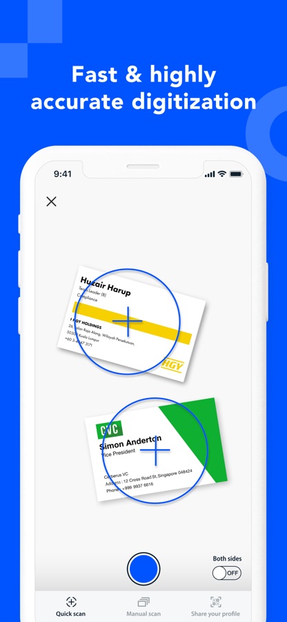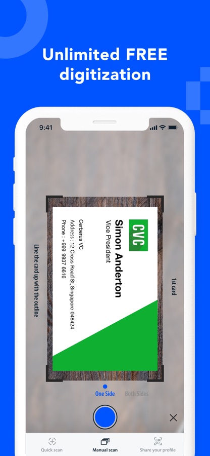 -Digitize both sides of a business card using enhanced scanning to create a complete digital card