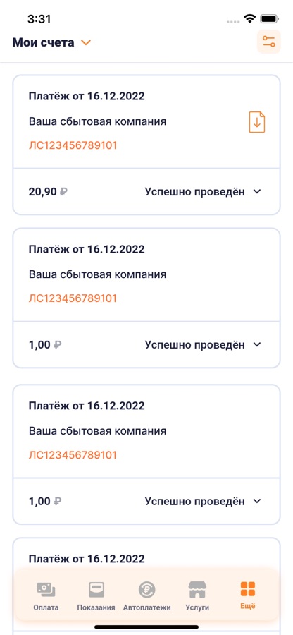 – Следите за состоянием лицевых счетов, историей платежей и показаний.