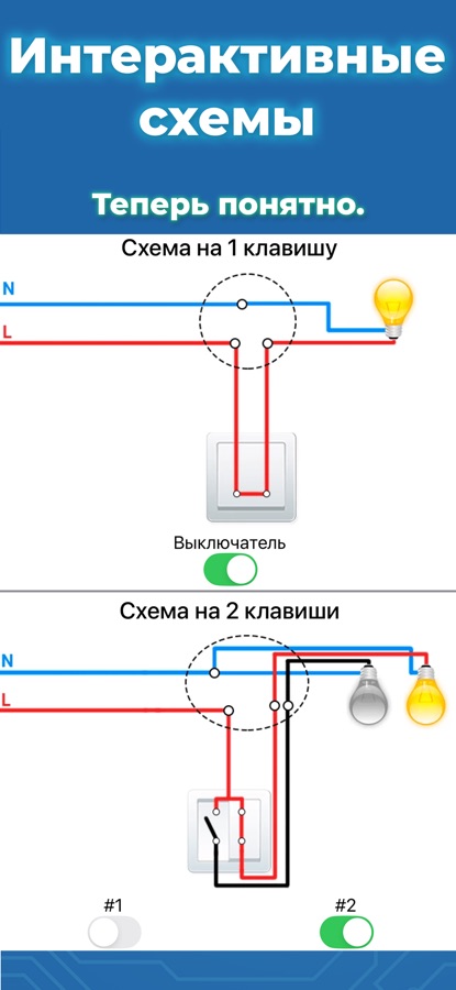 Интерактивные электрические схемы. Можно взаимодействовать с элементами, чтобы лучше понять их работу.