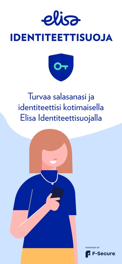 Suojele henkilökohtaisia tietojasi turvaamalla salasanasi. Elisa Identiteettisuojalla ylläpidät kaikkia kirjautumistietojasi turvallisesti yhdessä paikassa ja ne kulkevat aina mukanasi. Sovelluksen avulla kirjaudut eri palveluihin nopeasti sormenjäljellä tai kasvojentunnistuksella.