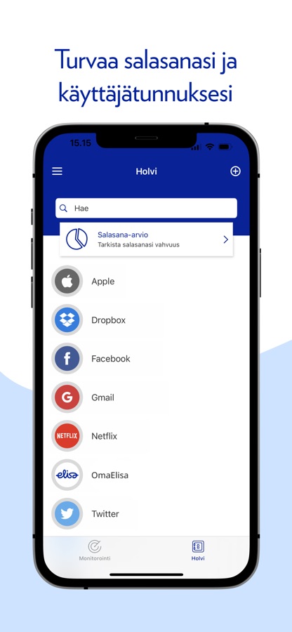 • Helppo salasanojen hallinta – Turvaa salasanasi ja käyttäjätunnuksesi helposti yhdellä palvelulla ja pidä salasanasi aina mukanasi.