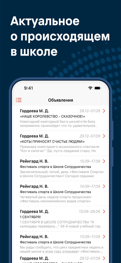 Приложение позволяет педагогам выставлять отметки по предметам, редактировать темы и домашние задания, вести переписку с коллегами, учениками и их родителями.