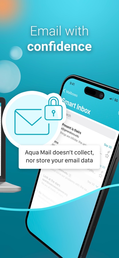 ‣ Security and Privacy are our core values. Aqua Mail does not collect and store your passwords, emails, or private message content.