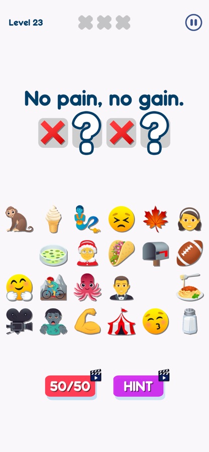 • Эмоджиональная поддержка: Не удалось отгадать загадку с первого раза? В игре есть система подсказок, которые помогут тебе найти опору и лучше понять язык эмоджи. Кроме того, у тебя будет несколько попыток, чтобы расставить смайлики в правильной последовательности, а если сможешь сделать это сразу — то двойная радость от идеального результата!