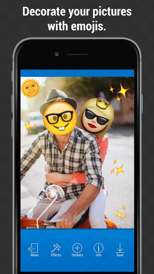 Do you love Emojis!? With Emoji Picture Editor, you can add all your favorite emojis to your photos!