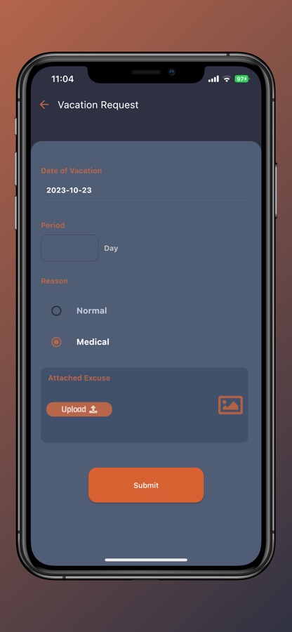 يمكن للموظف تقديم طلبات المغادرات والاجازات عبر التطبيق.