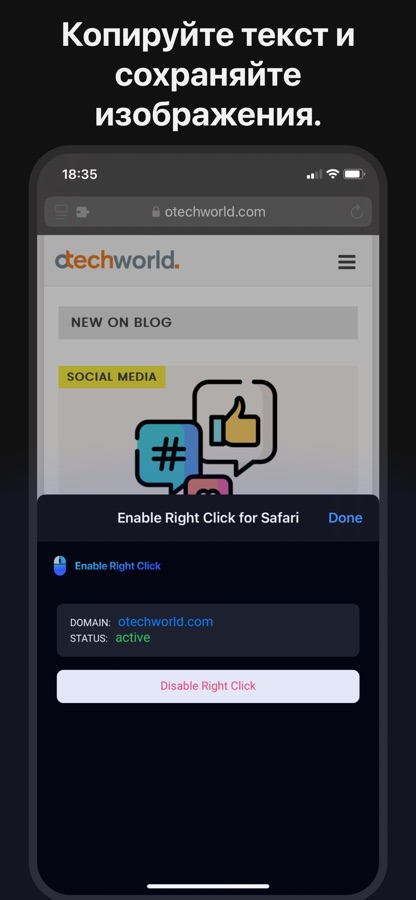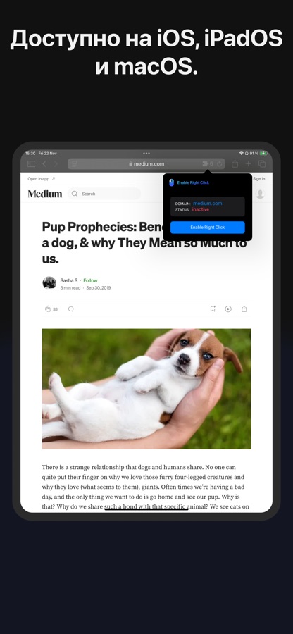 Кросс-платформенная совместимость: «Enable Right Click for Safari» доступна на macOS, iOS и iPadOS, что обеспечивает одинаково оптимизированный и стабильный опыт просмотра на всех ваших устройствах Apple.