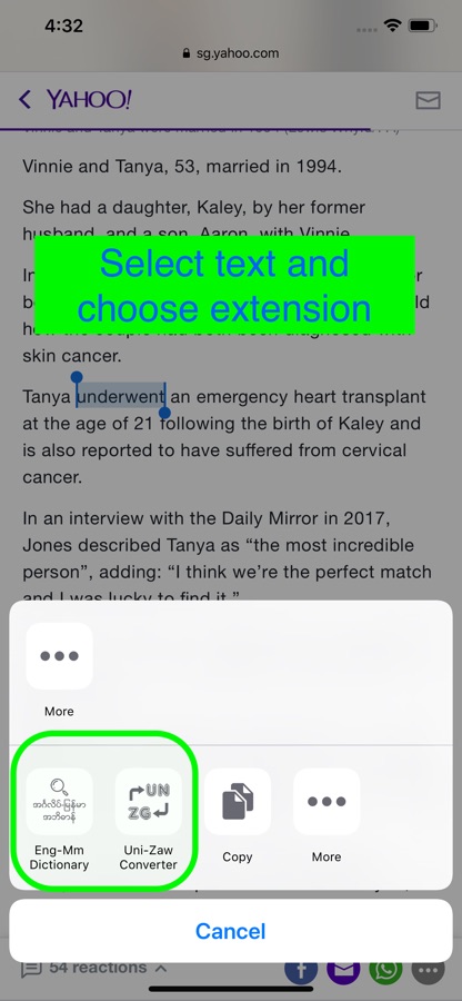 >>> If your device doesn’t display myanmar font properly, you can use this extension to convert.