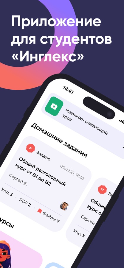 Личный кабинет студента «Инглекс» в вашем телефоне. Приложение поможет учить английский язык онлайн: выполняйте домашние задания и получайте обратную связь от преподавателя, запоминайте новые слова с помощью тренажера. Управляйте расписанием и оплачивайте занятия.