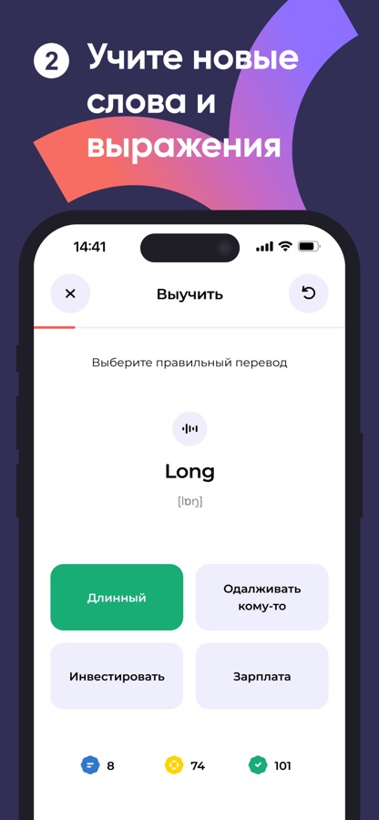 В приложении есть всё для эффективного изучения английского языка в любом месте и в любое удобное время.