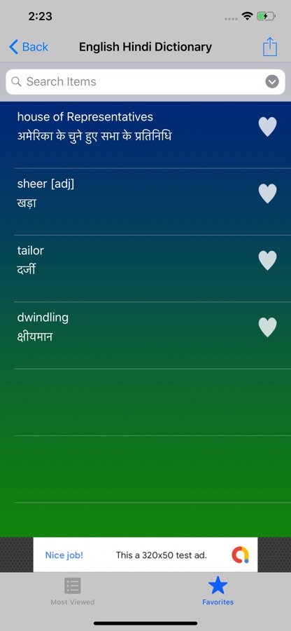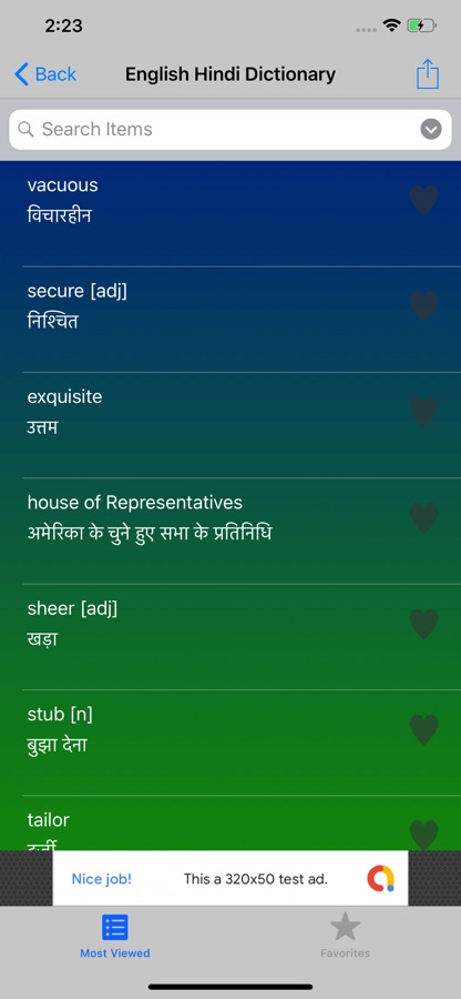 All the bookmark or favourite words are listed in favourites tab for future rapid review.