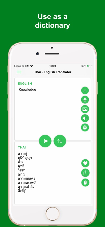 English — Thai Translator is an application that help you lookup dictionary and translate words and sentences from Thai to English, or translate English to Thai too. This translator is free and you are able to translate words or sentences quickly, conveniently and easily.