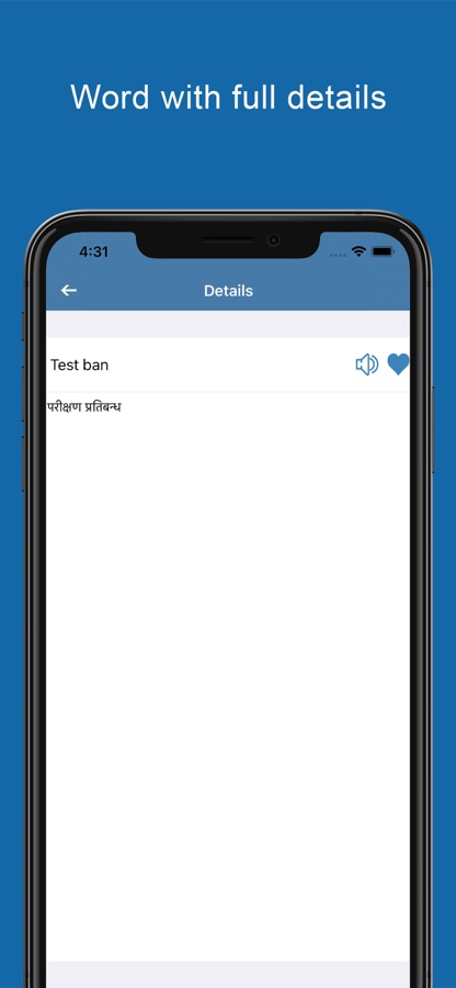 — Want to save a word meaning in the favourites? Tap the heart button and we will add this word automatically in your favourites. You can easily access to it anytime within the favourites choice in the options menu.