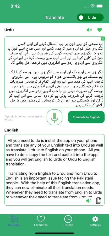 English to Urdu & Urdu to English Translator with instant Speech to text transcription