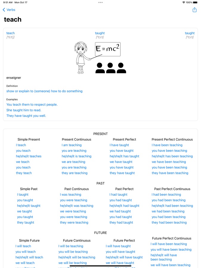 Это приложение позволяет вам изучать регулярные и нерегулярные английские глаголы.