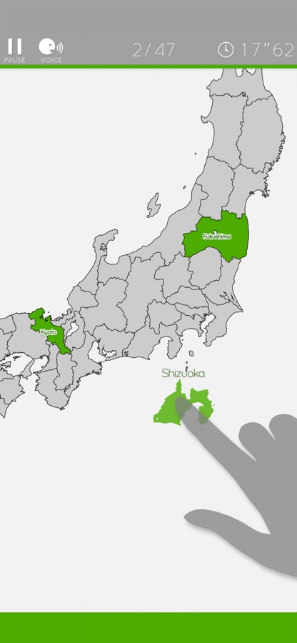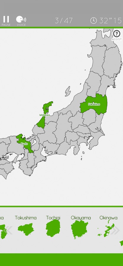 There are stages where you can play with prefecture names, stages with capital city names, and stages with only shapes and no names displayed.