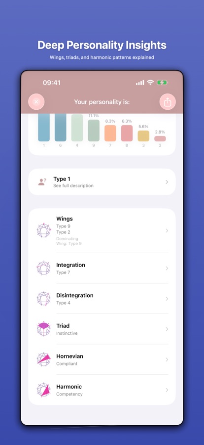 • Wings analysis — understand your unique personality blend