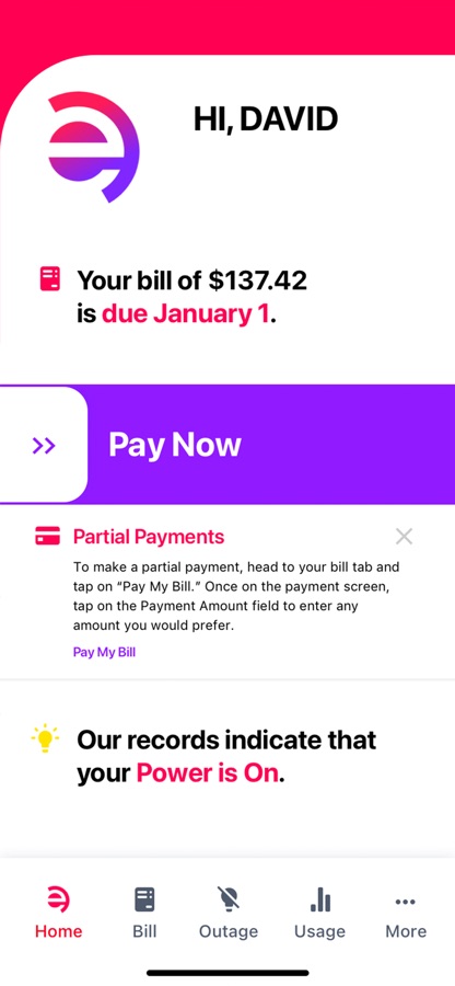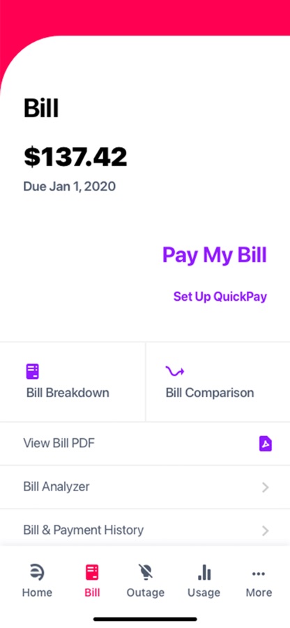 The app offers the ability to set up and manage contact preferences for billing, outage, usage and more via text, voice, or email channels. You can customize your dashboard to suit your needs and find the information you need, fast.