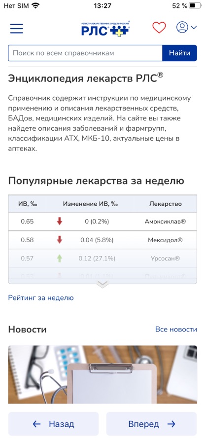 Новое приложение РЛС® — это еще один удобный способ пользоваться сайтом rlsnet.ru на смартфоне. В нем вы найдете официальные инструкции по медицинскому применению и актуальные описания лекарственных средств, БАДов, медицинских изделий, а также описания заболеваний и фармгрупп, классификации АТХ, МКБ-10, цены на лекарства в аптеках Москвы, Санкт-Петербурга и регионов.