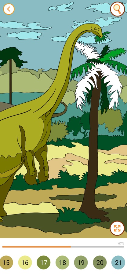 Наша раскраска – не обычная игра, это развивающие игры для всех возрастов! После каждой раскрашенной картинки ваша энциклопедия будет пополняться новыми карточками про динозавров. Вы узнаете чем питались динозавры, как их звали и каких размеров они были! А также ещё несколько интересных фактов про особенности каждого из дино!
