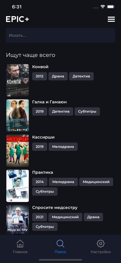 EPIC+ для всех любителей кино и сериалов. Для вас новые премьеры и уже полюбившиеся истории самых разных жанров от мелодрам и детективов до фильмов о войне и боевиков. Здесь доступны встречи с любимыми актерами и их героями. Здесь в лучшем качестве захватывающие истории и увлекательные приключения. Смотрите нас всей семьей, с друзьями, с домашними питомцами. Утром, днем или ночью в любом комфортном для вас положении.