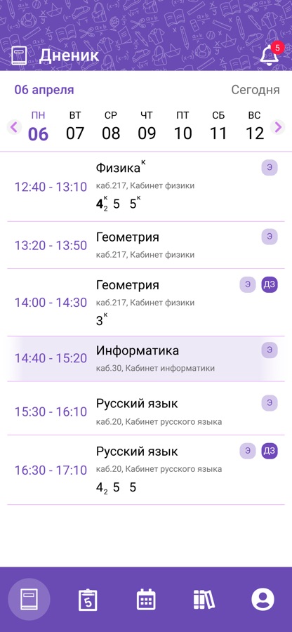 – расписание учащегося