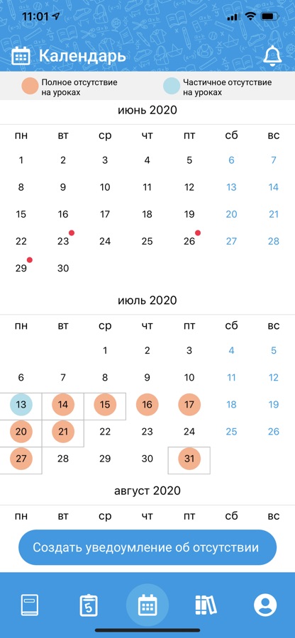 – выставление пометок об отсутствии ученика