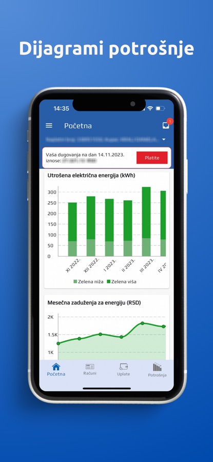 Dodatne funkcije mobilne aplikacije su uvid u arhivu računa i uplata iz prethodne tri godine, detaljan pregled potrošnje po zonama i tarifama, podnošenje prigovora i pristup upućenim obaveštenjima.