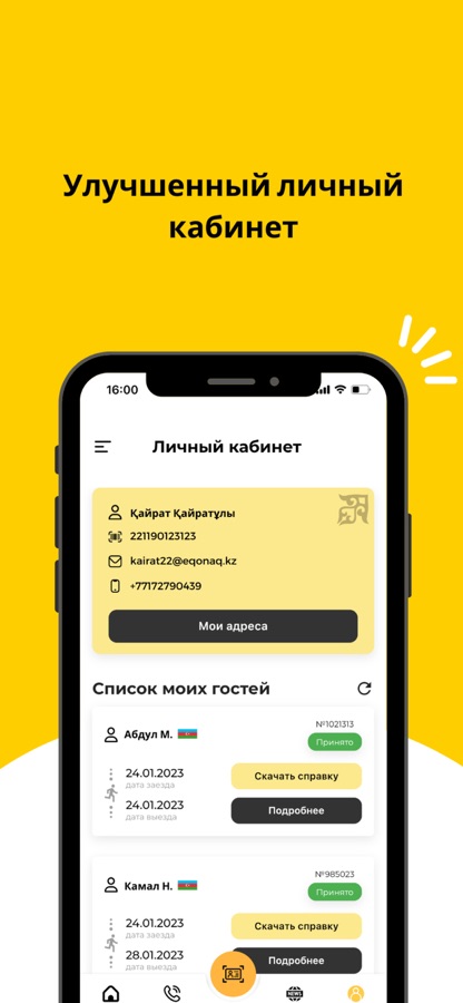 Мобильное приложение «eQonaq» — сбор, учет и обработка данных о пребывающих иммигрантов принимающими лицами.