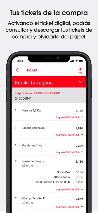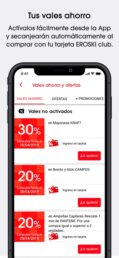 Descarga ahora la App EROSKI Supermercados: introduce tu cuenta o regístrate en EROSKI club y descubre todas las ventajas de llevar tu tarjeta digital EROSKI siempre contigo. Podrás ahorrar en tu compra con ofertas, bonos, cupones, vales y descuentos exclusivos. ¡Únete al club del ahorro haciéndote socio!