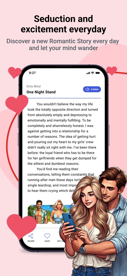 Dive into a world of Romance and Excitement with EroTales — your App for Short Stories evolving around the world of Romance and Lust. Create your personal Avatar, unlock the World of Romance and discover more than 150 short Stories on more than 1200 pages. Too tired to read? Give your Imagination a little boost and listen to the Stories as Audiobooks.