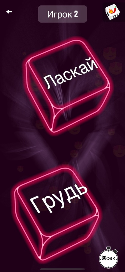 Нажми на экран и начни уже бросать эти кубики: будет указано действие и часть тела, которые вам или вашему партнеру придется выполнить.