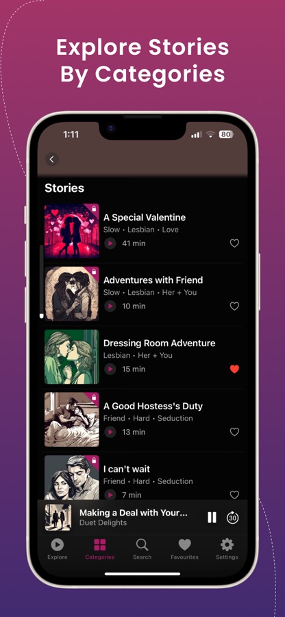Приложение для взрослых с эротическими историями Эротик было создано с учетом женщин и пар. Мы стремимся предложить людям более здоровую альтернативу визуальной порнографии. Приложения вроде Galatea Stories и Radish вдохновили нас на размышления о том, чтобы предоставить контент, который можно не только читать, но и слушать. Аудио-секс охватывает прямые и квир сюжеты разных тематик.