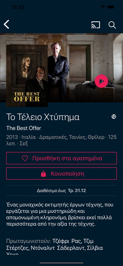 Enjoy blockbuster films, award-winning documentaries, Greek and international fiction series, 24/7 news, live streaming of all ERT channels, sports events of Greek and international interest, music shows, favourite programmes from ERT’s archive, and a wide selection of kids’ content.