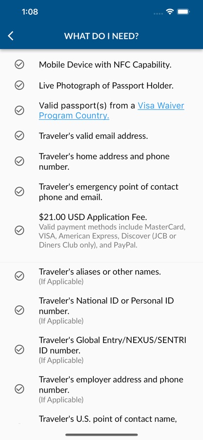 The Electronic System for Travel Authorization (ESTA) app from U.S. Customs and Border Protection allows Nationals of Visa Waiver Program (VWP) countries to apply and pay for a travel authorization without a visa. The ESTA app is a mobile version of the ESTA application process and information that can also be found on the ESTA website at https://esta.cbp.dhs.gov.