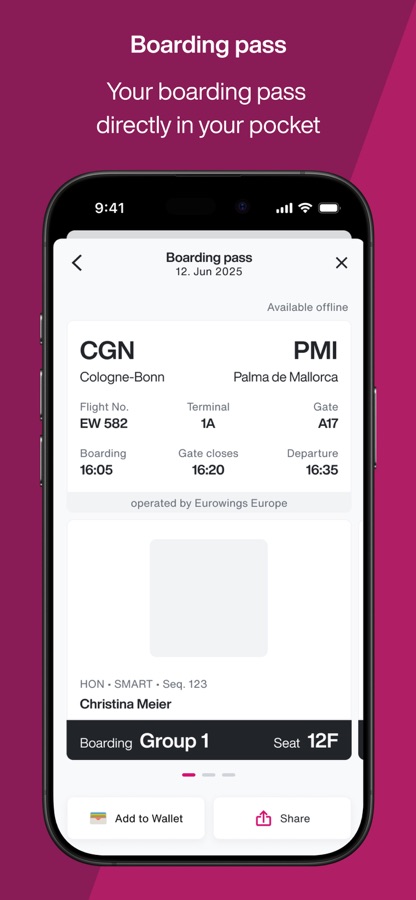 With the Eurowings App you have your trip right in your pocket: Quickly and conveniently all important functions and information at a glance.
