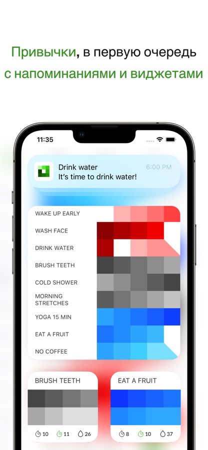 — Эффективная визуализация: Следите за прогрессом на простой и стильной доске привычек. Ваш успех делает её краше!