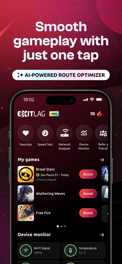 ExitLag’s proprietary multi-path technology keeps your connection stable during crucial moments. No more random freezes during team fights, no more getting kicked from ranked matches.